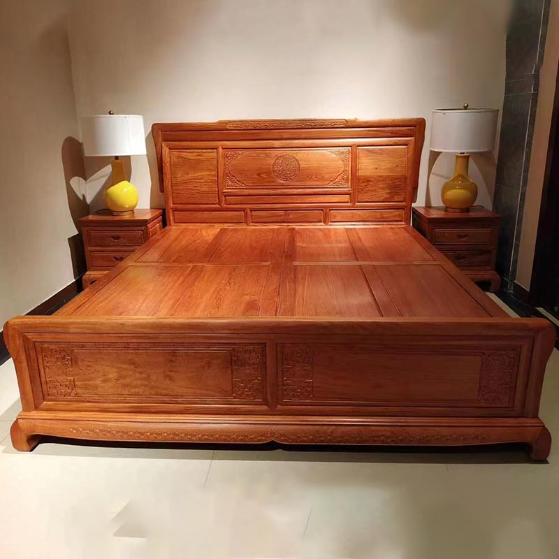 ຕຽງ Mahogany ແບບຄລາສສິກຂອງຈີນແມ່ນເຮັດດ້ວຍໄມ້ຈັນສີແດງທີ່ມີຫມາກໄມ້ຂະຫນາດໃຫຍ່ແລະ exudes ເປັນທໍາມະຊາດແລະຄວາມສະຫງ່າງາມ. ໄມ້ຊາຍສີແດງໝາກໄມ້ໃຫຍ່ທີ່ເລືອກມານັ້ນມີເນື້ອໄມ້ທີ່ອ່ອນນຸ້ມ, ມີຮູບຊົງທີ່ສວຍງາມ, ແລະ ມີຄວາມຊຸ່ມຊື່ນເປັນທຳມະຊາດ. ທຸກໆຊິ້ນຂອງໄມ້ໄດ້ຖືກກວດກາຢ່າງເຂັ້ມງວດເພື່ອສ້າງຄລາສສິກນີ້. ໂຄງປະກອບການ mortise ແລະ tenon ແມ່ນໄປເຊຍກັນຂອງປັນຍາຂອງເຄື່ອງຫັດຖະກໍາວັດຖຸບູຮານ. ມັນບໍ່ຈໍາເປັນຕ້ອງມີເລັບຫຼືກາວ, ແຕ່ມັນມີຄວາມເຂັ້ມແຂງທີ່ສຸດ, ສະແດງໃຫ້ເຫັນເຖິງຝີມືທີ່ສວຍງາມແລະການສະແຫວງຫາຄຸນນະພາບຢ່າງຕໍ່ເນື່ອງ. ຫັດຖະກຳພື້ນເມືອງນີ້ບໍ່ພຽງແຕ່ເຮັດໃຫ້ຕຽງນອນມີຊີວິດການເປັນຢູ່ຢ່າງຍາວນານເທົ່ານັ້ນ, ຫາກຍັງຍຶດໝັ້ນ ແລະ ສືບທອດວັດທະນະທຳພື້ນເມືອງອີກດ້ວຍ.
